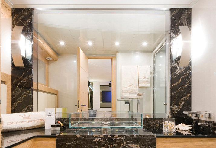 The Dominator 780 Sascha is modern with captivating lines and has a design aimed at reducing the barriers between internal and external spaces. The wide and beamy salon offers a spectacular view of the sea through her huge ...