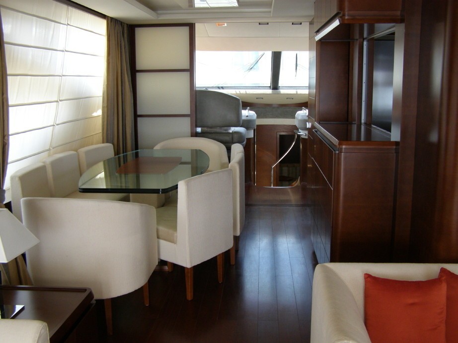 It is furnished with a king size bed and an additional 42’ flat screen Panasonic TV. The VIP Stateroom is aft of the guest area and is equipped with a double bed, plenty of closet space and an en suite head + shower. There is also a twin cabin.