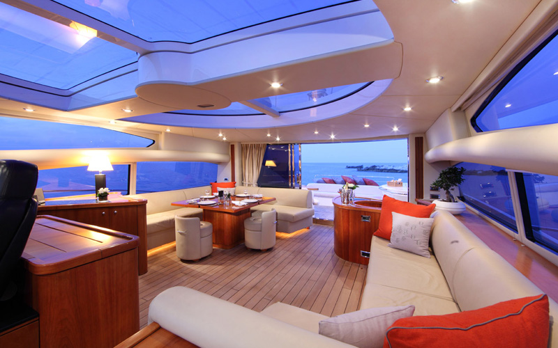 Sunseeker Motor Yacht CHAMPNEYS has accommodation for six to eight guests in 1 Master Cabin, 1 Double Cabin, 1 twin cabin and 1 bunk cabin.