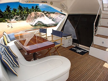 SEMPER FI has two separate dining areas – one inside in the salon and a second alfresco dining area on the aft deck. This is shaded by the top deck and is the ideal place to enjoy the warm Caribbean climate in a protected setting. For sunlovers, the flybridge is fitted with sunpads with guests can relax and soak up the Caribbean rays.