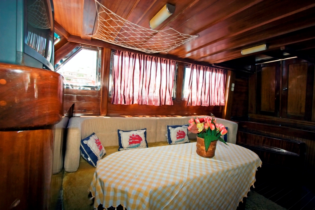 Luxury Gullet YORGUN 1 offers comfortable accommodation for 10 guests in 5 cabins, each with a private bathrooms, toilets and air-conditioning. Two of the cabins are Master cabins and the remaining three are double cabins.