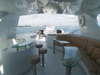 The NEVER ENDING JOURNEY motor yacht has a 60ft sundeck which features a Spa Pool, full service wet bar and plenty of space for relaxing in the sunshine. Her 30ft aft deck is the perfect place to enjoy a sumptuous meal served fresh from the gourmet galley.