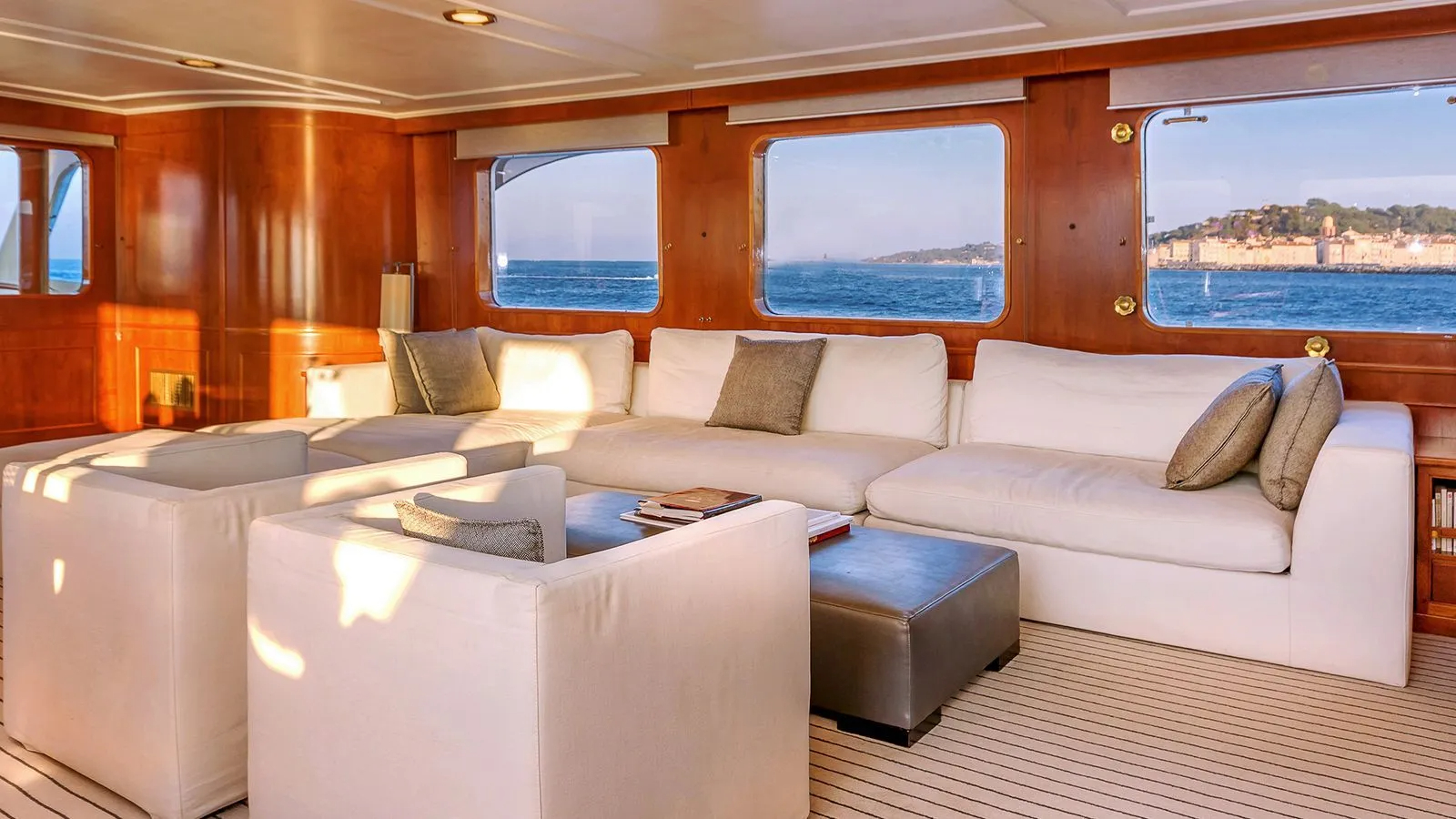 The yacht's VIP double cabin has a 1,60m Queen bed and is located on the main deck forward, which can also transform into a cosy salon. The three twin cabins are located on the lower deck and all cabins are equipped with ensuite facilities, a fridge and LCD TV with DVD and CD player.