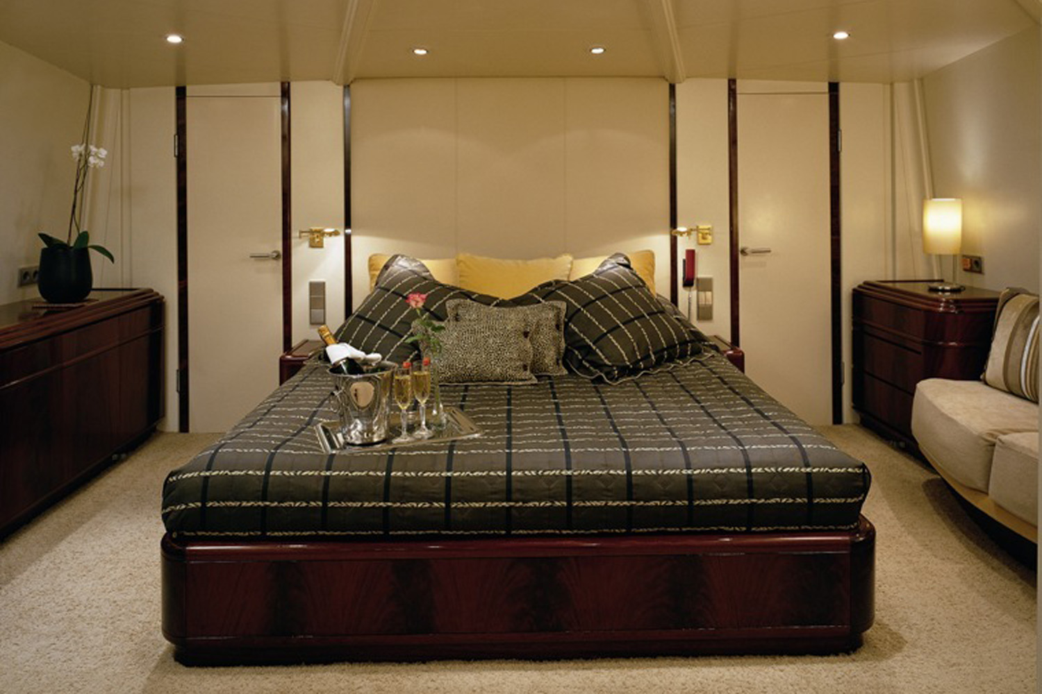 The accommodation onboard comprises of the Master suite which is located on the main deck which has ensuite facilities and a private office. She has two VIP suites (pictured below), also with ensuite facilities. There are also two twin cabins, both with ensuite facilities.