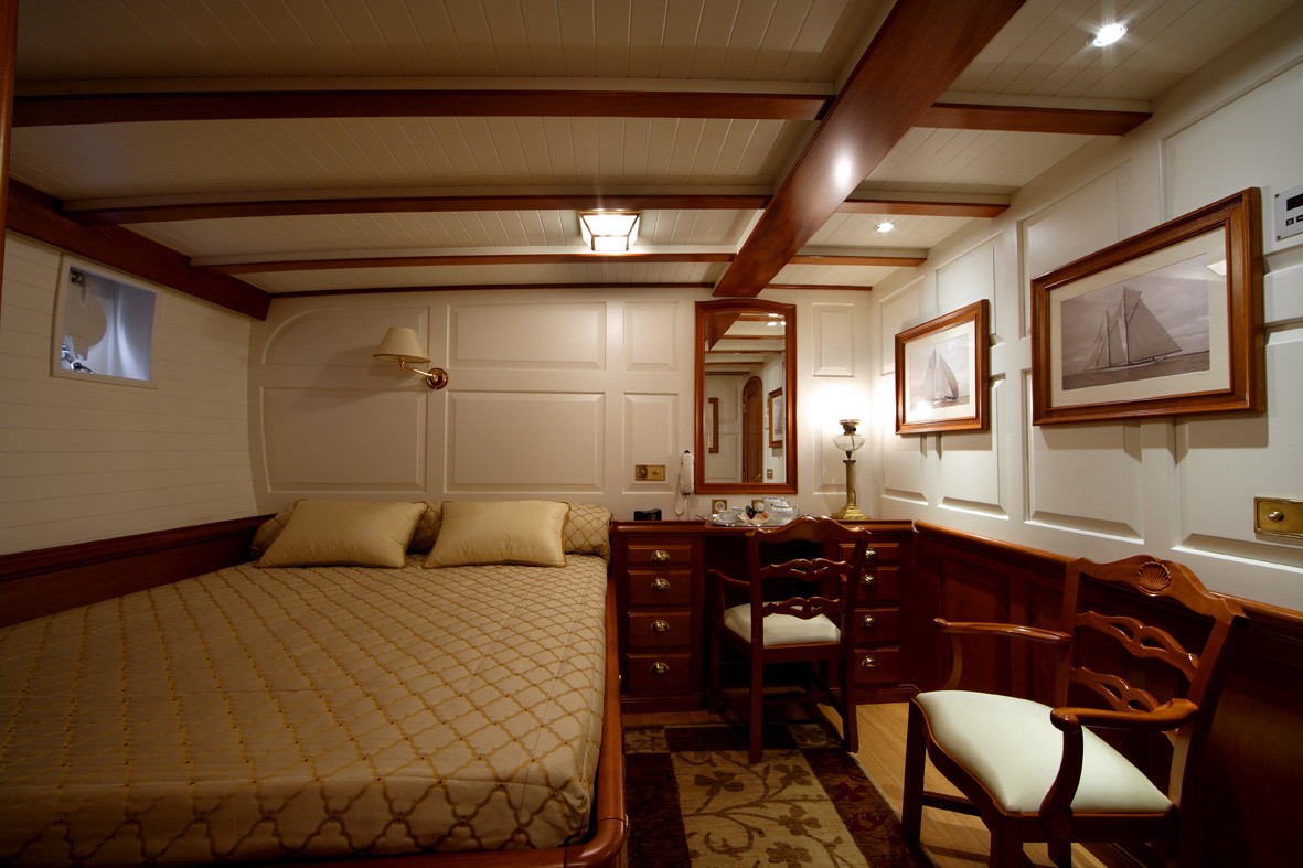 All guest cabins are exquisitely finished with mahogany panelling, while all interior ornamental details follow the original Herreshoff designs. The en-suite bathrooms have separate showers and toilets and are finished with elegant period fittings.