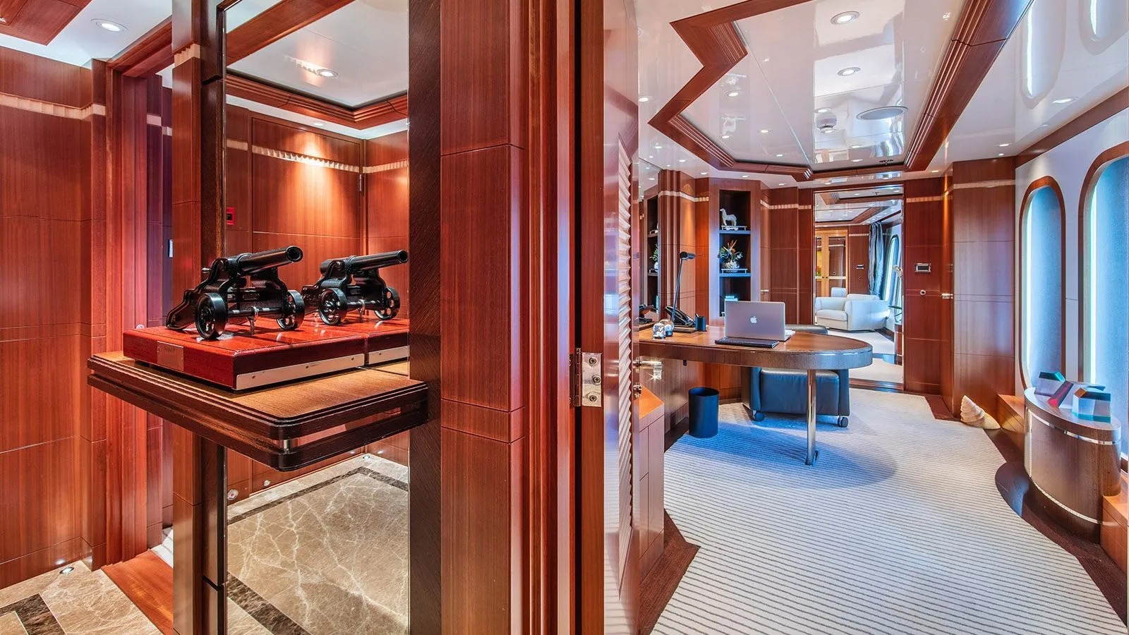 The suite includes a private office and walk-in wardrobes and a large bathroom ensuite. With added flexibility, the VIP cabin is able to be converted if necessary into another general office. Four further guest cabins are situated on RARE FIND’s lower decks.