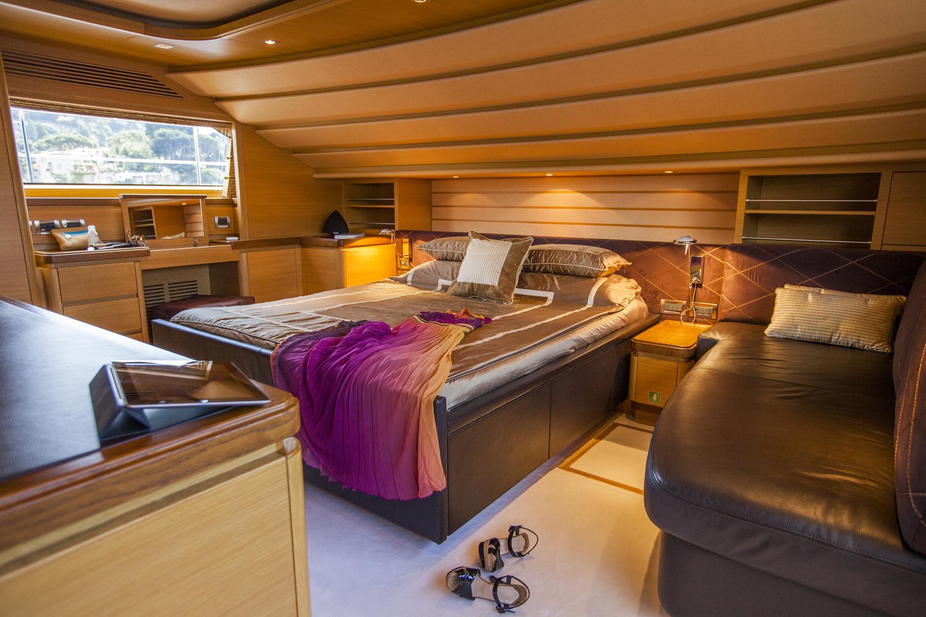 The master cabin is located on the main deck and therefore is filtered with plenty of natural light. The master has a large ensuite bathroom, a large walk in wardrobe, an audio visual system and a safe. On the lower deck, there are two double cabins and two twin cabins.