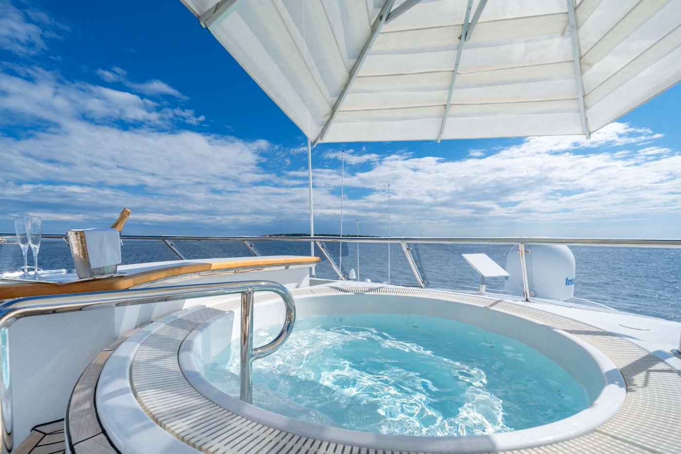 Her top deck is fantastic and includes a luxury cocktail bar, Spa Pool, plenty of space for sunbathing and ambient lighting for after dark.