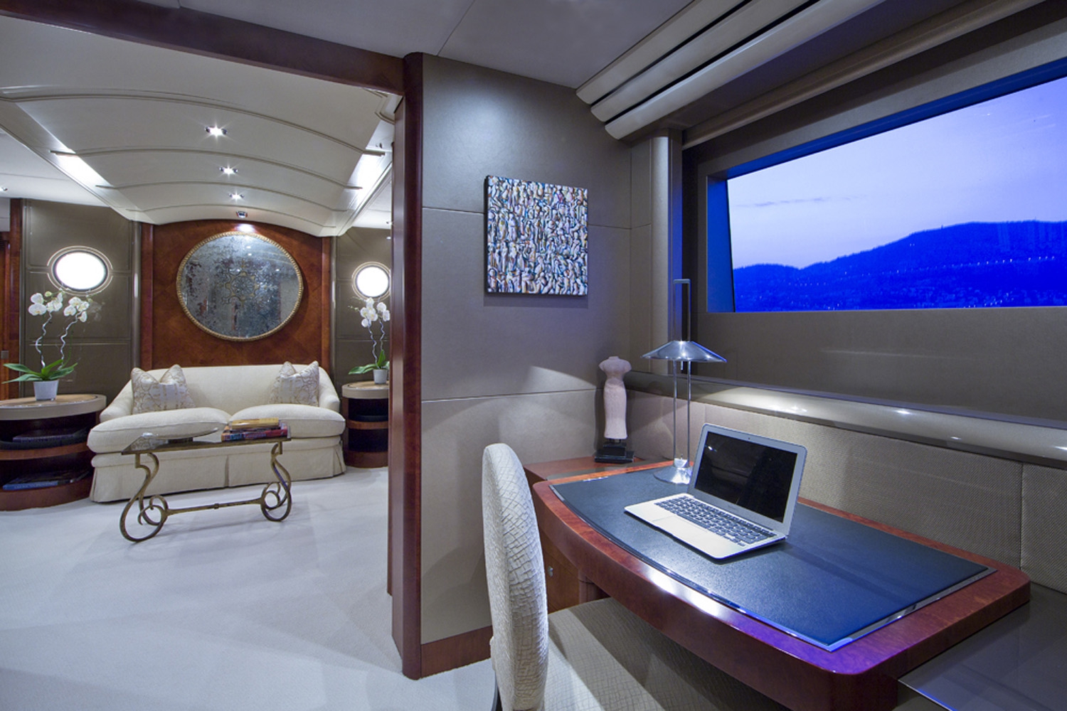 Access is provided by the main staircase, another powder room is located in the vestibule next to the ship's office.