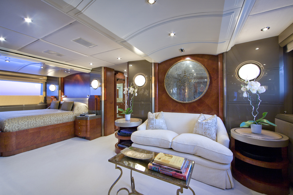 A central concealed crew lobby is located amidships on the main deck with access to the galley, the dining room and salon, the owner's stateroom entrance hallway, upstairs to the ship's office and wheelhouse or downstairs to the ...
