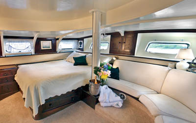 Ayacanora previously offered three guest staterooms, but has recently undergone a remodel reducing the passenger capacity to a maximum of 4 guests. The two forward guest staterooms are being combined into a single room. The aft stateroom, which remains unchanged through the remodel, is furnished with a queen sized bed, and en suite bathroom.