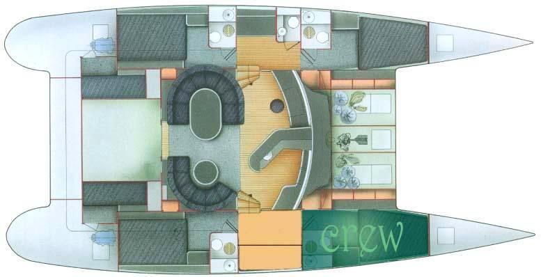 The luxury crewed Marquises 56 Caribbean sailing catamaran is an awesome yacht charter boat. Enjoy relaxing in the large, air conditioned saloon, which boasts dining and cocktail tables, a sofa, a TV with DVD player and a CD stereo with indoor and outdoor speakers.