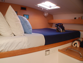 Her aft deck has a dining table with u shaped seating that comfortably sits six guests for meal times the whole way around the table. Sit back and relax and enjoy the views while the crew serves you gourmet meals and delicious cocktails.