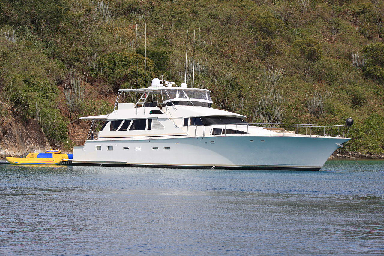 Luxury Motor Yacht Panache is available for private crewed charters in the Leeward Islands and the Virgin Islands of the Caribbean Sea year around. 85ft Motor Yacht Panache accommodates up to eight guests in four comfortable staterooms.
