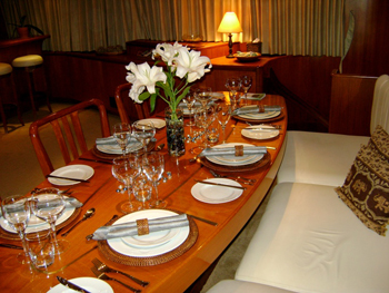 Panache’s exterior space is also another terrific feature of this yacht. Offering plenty of outdoor space including a vast fly-bridge covered with a full awning which stays in place for guest comfort even while the vessel is underway.