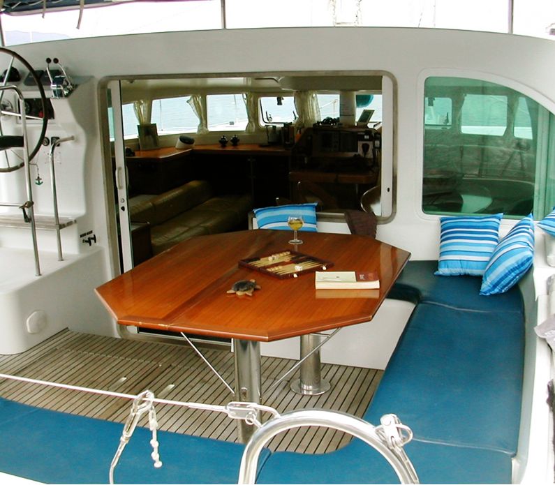 The elevated lounge areas in the cockpit make a great place for taking in the view. El fresco dinning is also possible on the aft deck and forward of the yacht you can take a ride on the bow and spot dolphins or relax on the catamarans trampolines.