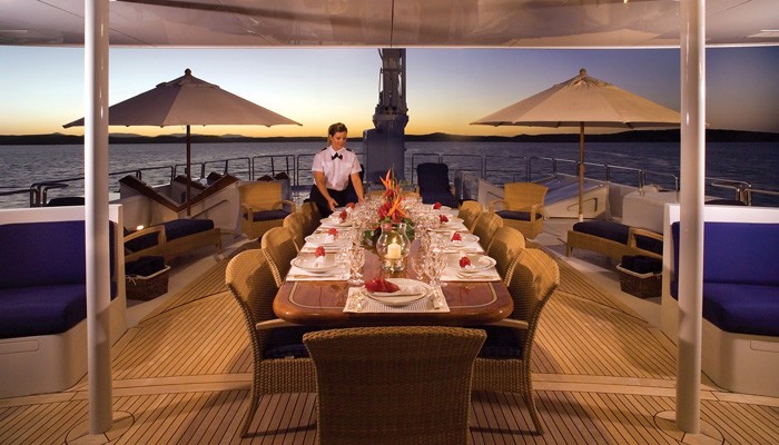 Aft of the Sky Lounge there is a large alfresco dining area that provides breath-taking panoramic views, complemented by cosy conversation areas for cocktails.