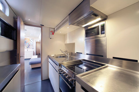 The interior decor combines simple yet luxurious features including bleached teak wood for the joinery and lacquered ceiling and sides. BARONG C accommodates four guests in two cabins with the master suite located amidships. This is the most comfortable position when underway as pitching and rolling is felt to a minimum.