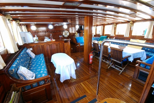On deck, Kayhan 11 has 2 seperate areas to relax in the sun or shade.The kitchen on the gulet is based on the main deck, where the guests able to view the kitchen while the cook is preparing food.