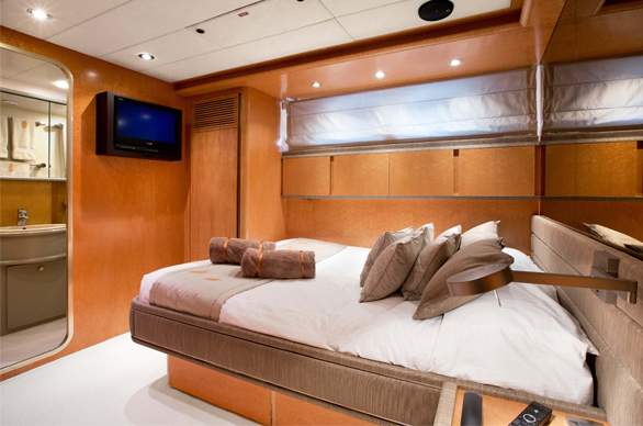 This superyacht can accommodate up to 8 guests in a master, two double and one twin cabin.