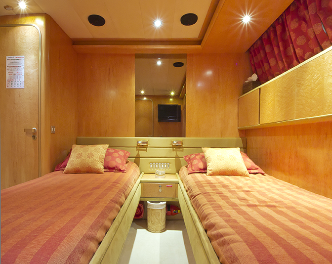 NOTABLE FEATURES: ~ Can host up to 70 guests when docked ~ Alfresco dining ~ Sunpads ~ Spacious cabins ~ Stabilisers