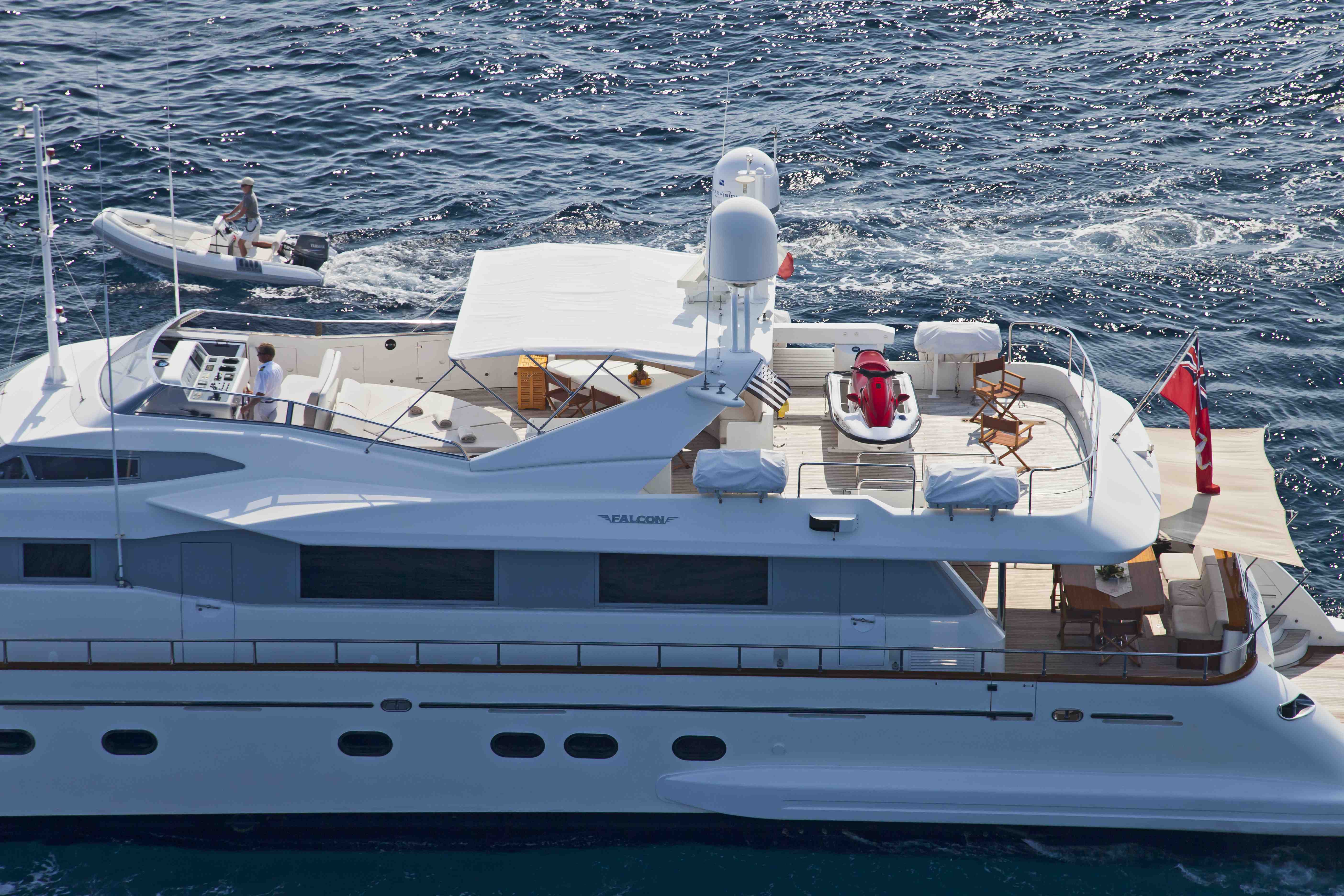 Luxury Mediterranean based motor yacht BOJANGLES is a 30,70m (100' 8") motor yacht built in 2004 by Falcon yachts. She is consistently upgraded by professional crew and she also received a mini refit in 2008. The yacht can accommodate up to 10 guests in 2 double and 2 twins plus a convertible TV room / double cabin.