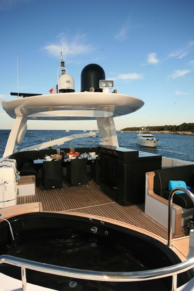 There are separate crew quarters for 5. Luxury motor yacht LOR has the following extras and amenities: A ZAR 43 tender with 60hp outboard, a Jet Ski Seadoo 2007, Water skis, Wake board, and a Donut. The yachts Audio Visual Equipment and Deck Facilities include a Plasma Lcd TV with DVD, a Ipod Station, a HiFi Audio system in each cabin.
