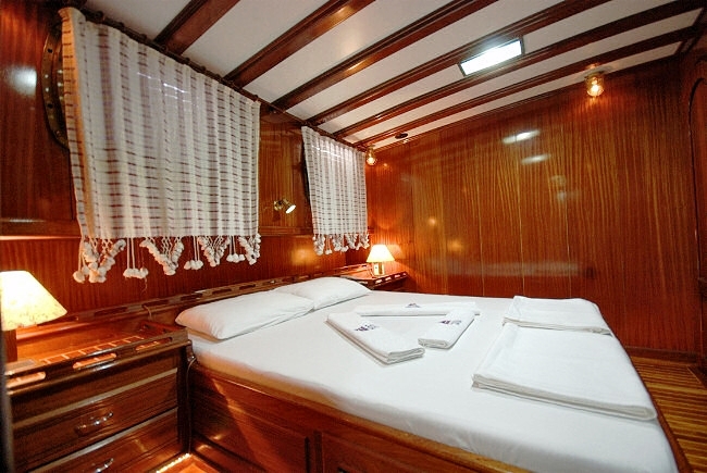 The wood work throughout the yacht is magnificent and features mahogany and teak. Deluxe Gulet Kayhan Kaptan has six spacious double cabins of equal size and all have private ensuite bathrooms, air conditioning and tv & dvd player.