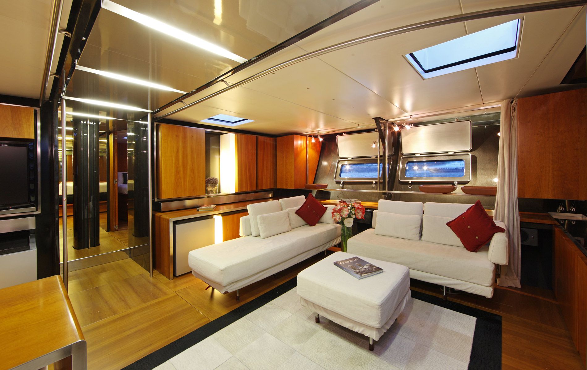The main salon, for example, is one large area that includes the galley and the navigation area. Uniquely, the salon of Wally ‘B’ can be arranged in several different configurations, depending on preference, and her couches can be moved and arranged as can be done in a traditional onshore living room.