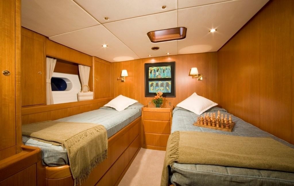 The guest using the exercise room would share a shower with one of the other guest cabins. Sailing yacht KAWIL is fully air conditioned through out. Crew has a separate companionway, and separate crew heads and showers.