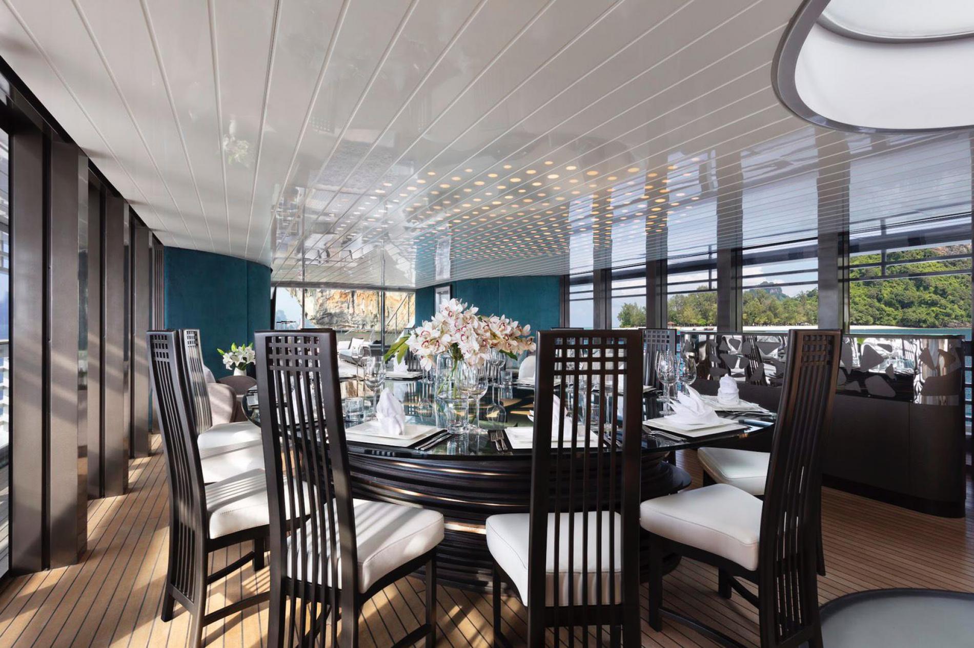Luxury yacht OCEAN EMERALD boasts an amazing lighting system which is capable of altering moods with bright beach house or sultry lounge bar feel.
