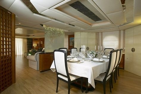 This area consists of a well-appointed seating area, games table, TV, video system culminating in the dining saloon. The open layout creates a genuine feeling of space and also allows for three separate uses of this area at the same time.