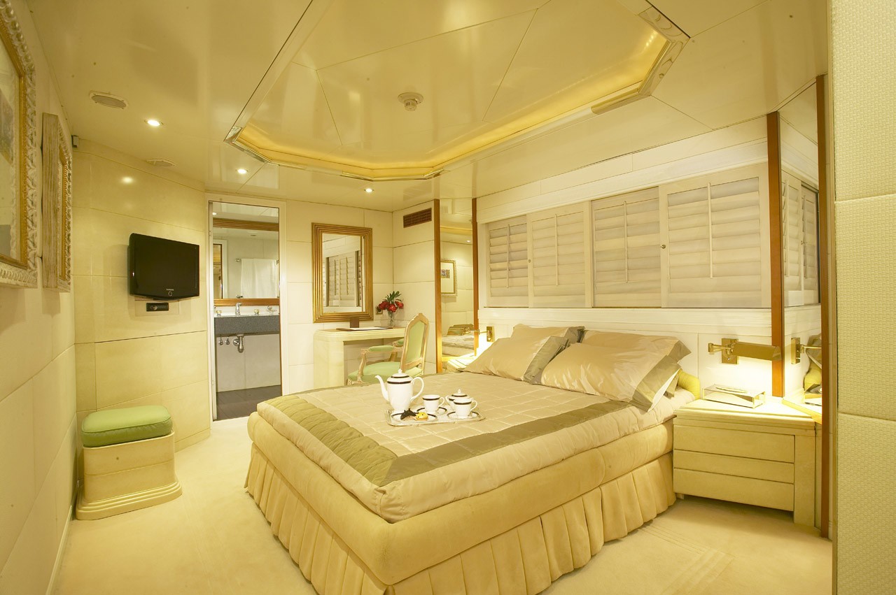 On the lower deck are 4 cabins, each with en-suite bathrooms. The single cabins and additional salon with bar are located on the upper deck.