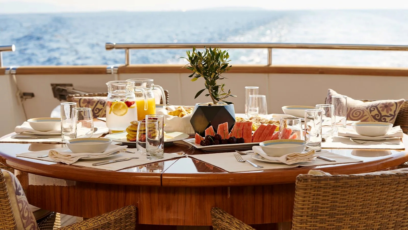 NOTABLE FEATURES - IDYLLE: Classic Benetti design ~ Contemporary inviting interior decor ~ Open plan salon and dining ~ Main deck master stateroom ~ Sky lounge ~ Alfresco dining ~ Extended swim platform ~ Sundeck ~ Jacuzzi ~ ...