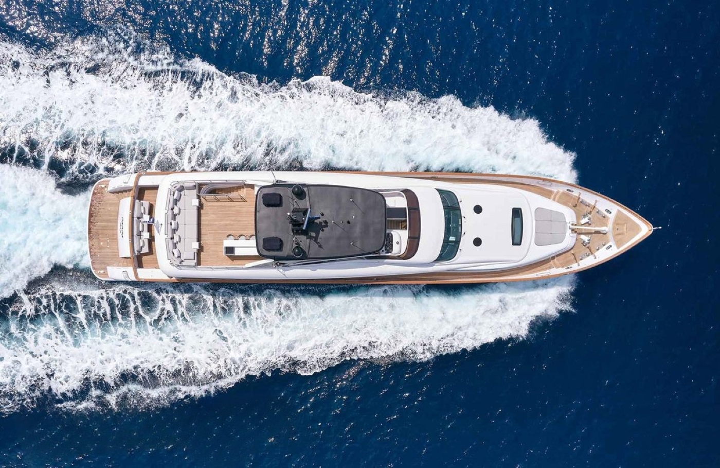 She features the attractive well-known sleek lines of a Maiora 38 DP along with a stylish and modern interior. She can comfortably accommodate 12 guests in one master cabin, one VIP cabin, two double cabins and two twin cabins with Pullman berth, all of them equipped with an ensuite bathroom.