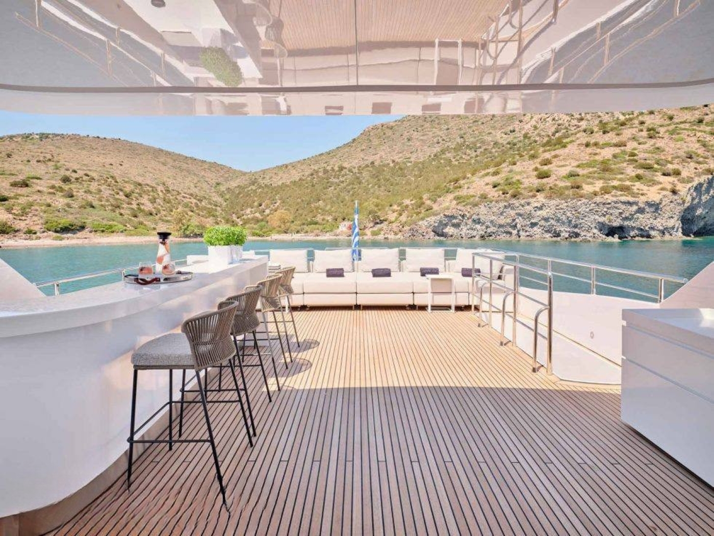 She has a GRP hull and superstructure and is driven by two MTUs, allowing her to reach speeds between 16-20 knots. She was refitted in 2022. This yacht has a dedicated and professional crew of 8.