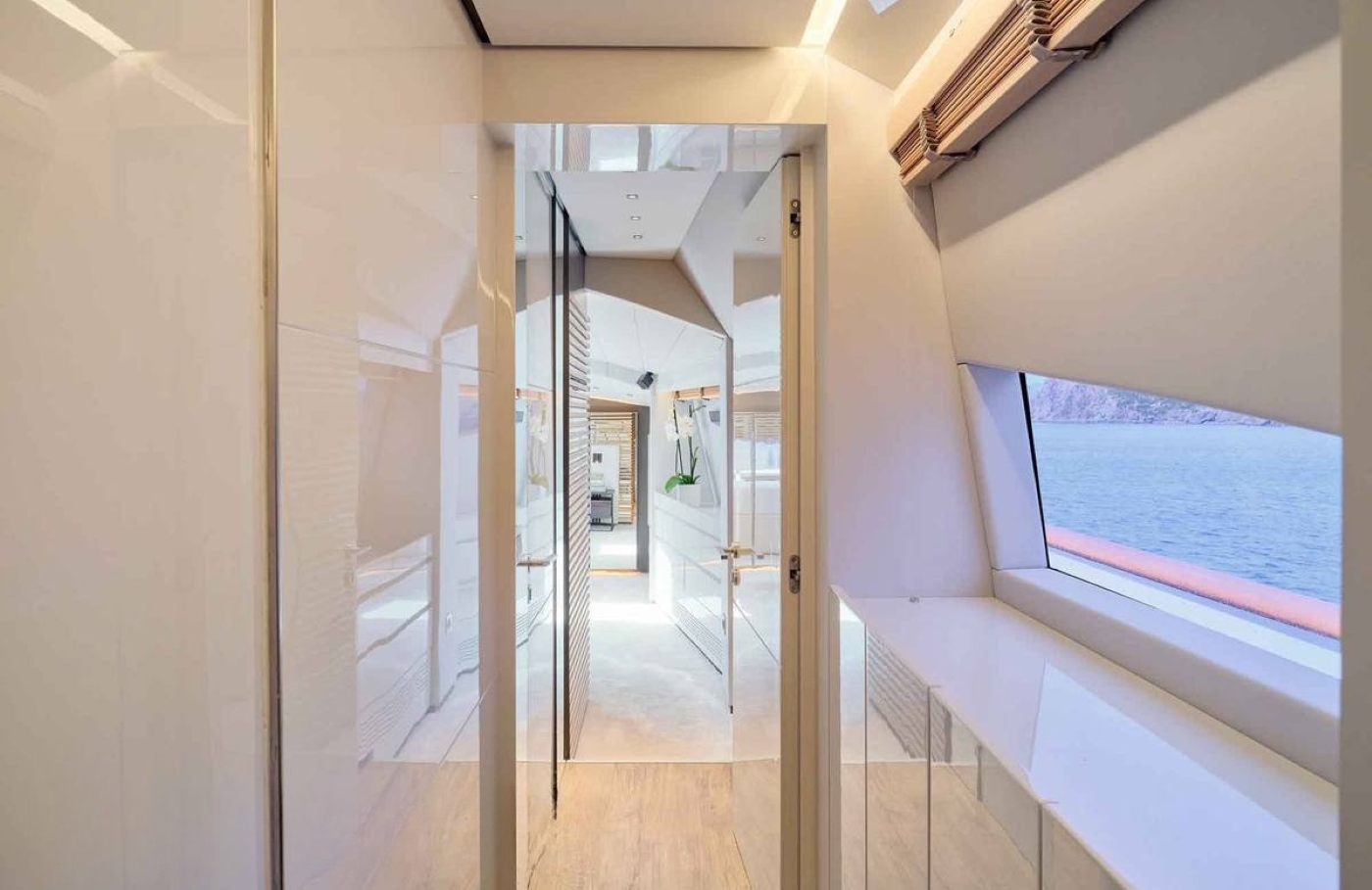 She has a GRP hull and superstructure and is driven by two MTUs, allowing her to reach speeds between 16-20 knots. She was refitted in 2022. This yacht has a dedicated and professional crew of 8.