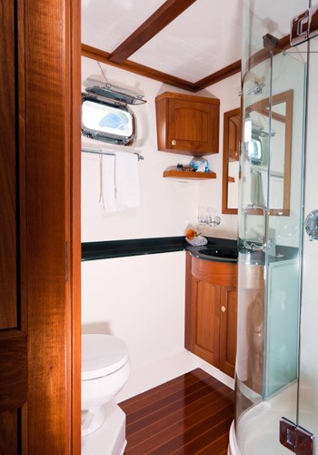 The motor yacht Escapade offers up to 4 staterooms which provide a high level of comfort. There is a large master stateroom and a further two guest staterooms all with beautifully detailed ensuite facilities. A further forward triple-berth cabin is also available, should additional accommodation be required on the charter.
