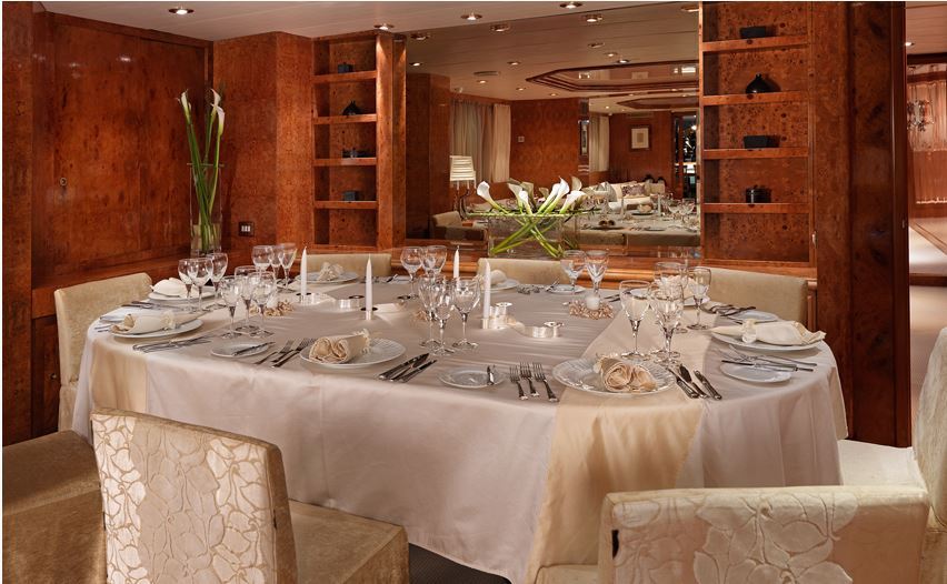 ALEXANDRA K has a simple and very relaxing style with very large spaces both in the interior and on the outer decks. Alfresco dining area is located on the main deck aft.
