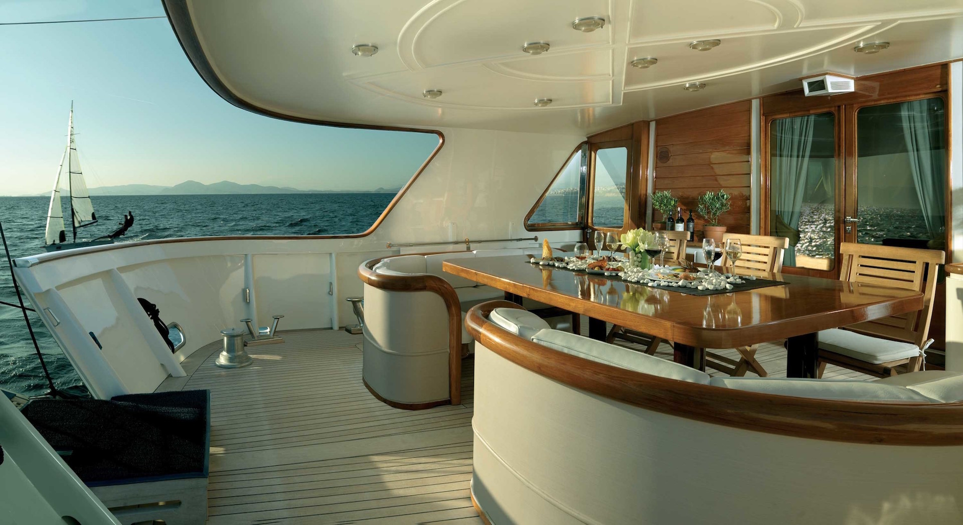 Forward of the salon is a formal dining room big enough to seat all guests on board. Alternatively guests can enjoy dining al fresco in a more relaxed atmosphere on the Aft Deck.