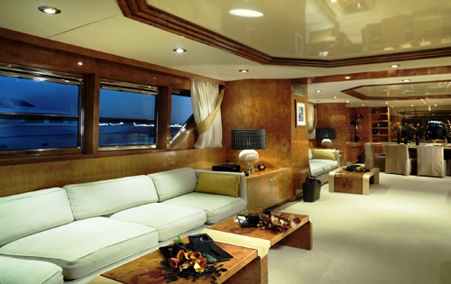 The main salon features cool hues of soft beige and tans of the wood-lined seating areas. These colours are continued throughout the yacht creating a peaceful and pleasing atmosphere.