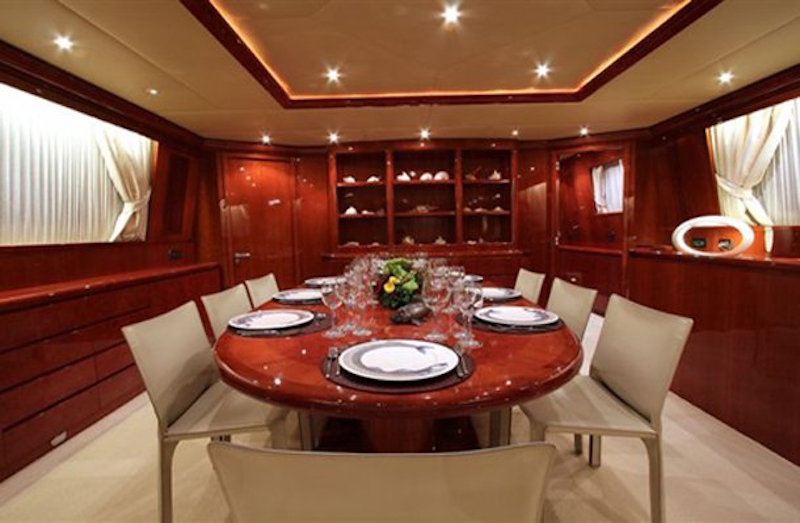 This super yacht offers effortless outdoor living with al fresco dining possible on both the upper sun deck and the main aft deck. She has a great variety of water sports toys on board to enjoy the stunning waters including a jet ski, wakeboard, doughnuts, skis and snorkel gear to name a few.