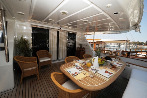 POUARO offers plenty of places to relax on deck both in and out of the sun as required. Enjoy al fresco dining on the aft deck, sip cocktails on the spacious sundeck or simply enjoy the ride as you cruise along on the cushioned ...
