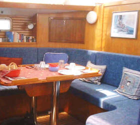 The main salon has an entertainment center with CD/Changer, Radio and speakers on deck. The large airy salon can seat 8 comfortably at its large dining room table. The modern galley can take care of any hungry racing crew. It comes fully equipped with freezer and refrigerator.