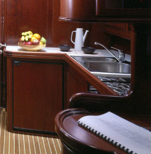The in mast furling is standard, while the teak decks add to its sense of class. Standard equipment includes the roller furling system, the lead fin keel, throttle, fuel tank indicators and switches panel board in the helmsman seat.