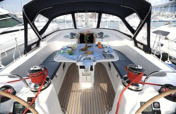 Furthermore, there are self tailing winches, sparcraft boom-vang with hydraulic piston and goiot aluminum toe rails with 6 fairleads. Price includes a fully equipped yacht, skipper and hostess.