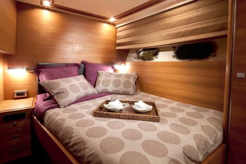 Motor yacht MAYAMA can sleep 8-10 guests in a Master, a VIP cabin and 2 double cabins. She can possibly sleep two additional children on request.