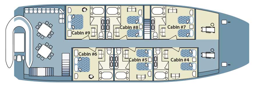 All cabins have a private direct ocean view and a TV/DVD. The yacht has a crew of 10 + a nature guide. Included is always the use of common areas, shared or double accommodation, all meals and drinking water, tea and coffee, as ...