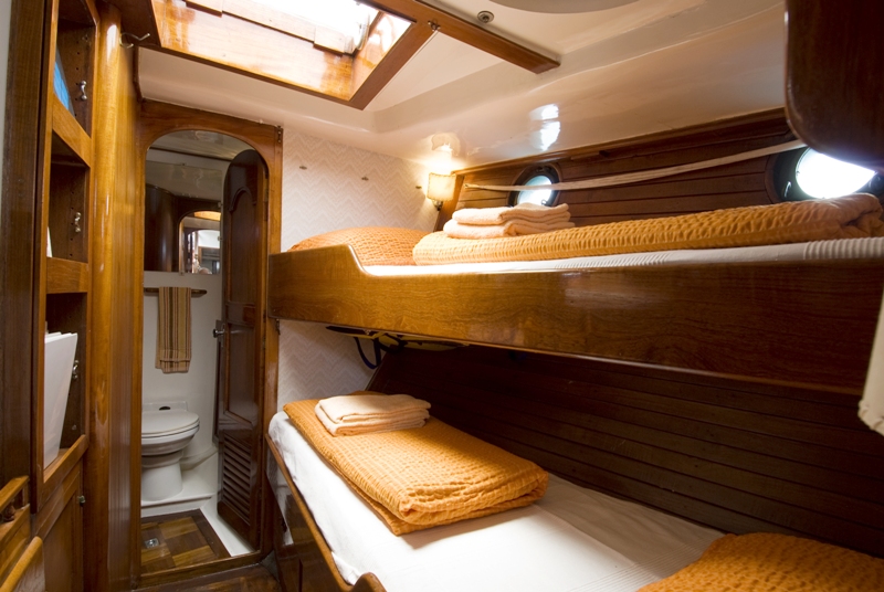 Her master cabin aft is spacious stretching the full bean width and with a dedicated ensuite bathroom.
