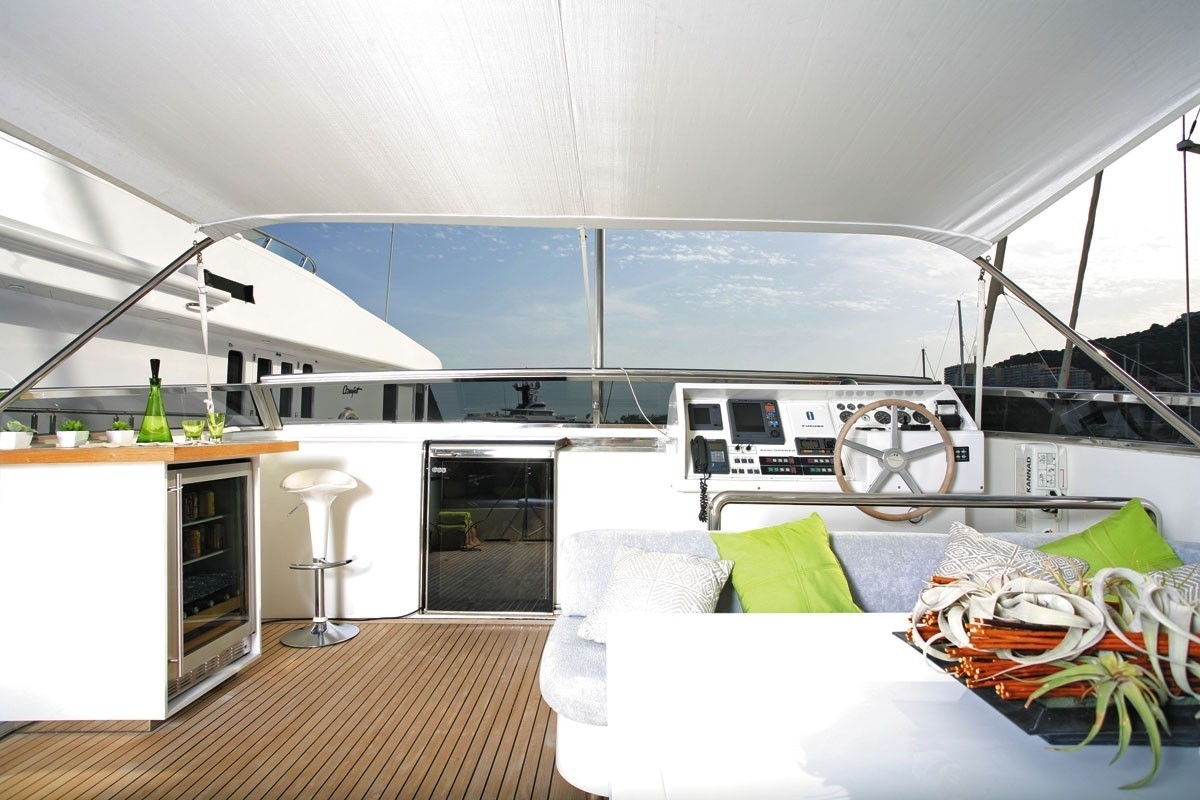 The yacht boasts plenty of internal and external spaces to enjoy including a well equipped fly bridge.